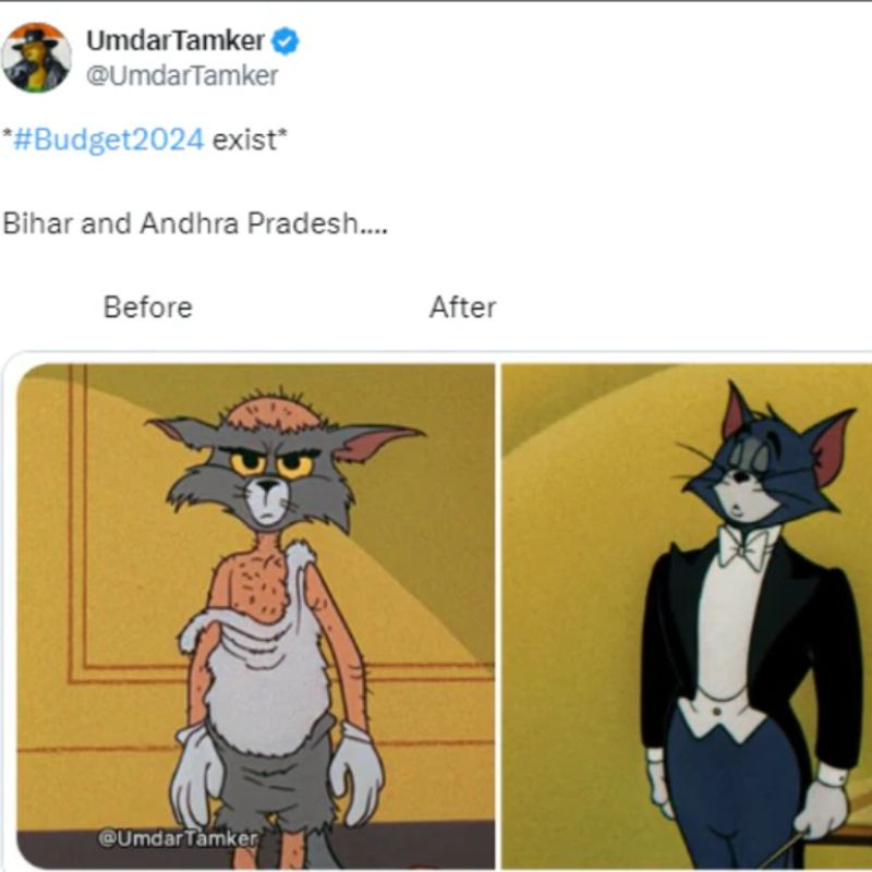 The Budget 2024 announcement by Finance Minister Nirmala Sitharaman sparked a wave of humorous memes across social media, particularly focusing on the financial aid allocated to Andhra Pradesh and Bihar. The memes creatively depicted the “emotions” of other Indian states in reaction to the significant funding boost for these regions.