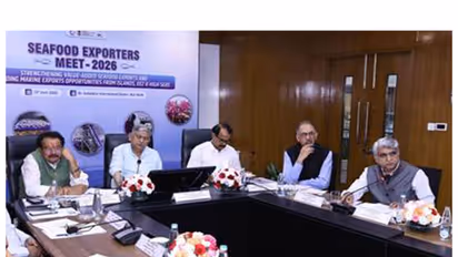 Seafood Exporters Meet 2026 was organized here by the Department of Fisheries under the Ministry of Fisheries, Animal Husbandry & Dairying. The meet was organised to provide a structured platform for interaction between the Government and industry stakeholders and to obtain feedback from exporters on current challenges related to market access, pricing pressures and compliance requirements, and to deliberate on measures required for enhancing value addition, market diversification and marine export expansion from islands, EEZ and high seas, a release said.