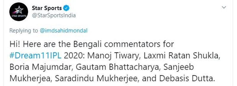 On its Twitter handle, Star Sports revealed the names of the commentators for IPL 2020. In response to questions from fans on Twitter, the host broadcaster listed out the names of those who will be doing commentary in English, Kannada, Bengali and Hindi.