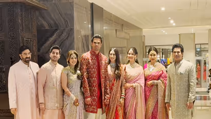 Post-wedding, the couple- flanked by their families, including Sachin Tendulkar, Anjali Tendulkar, and Arjun's sister Sara Tendulkar- posed for a family portrait for the cameras.