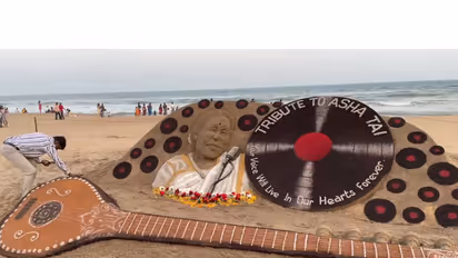 Renowned sand artist Sudarsan Pattnaik has paid a heartfelt tribute to legendary singer Asha Bhosle at Puri Beach on Sunday after her demise today.