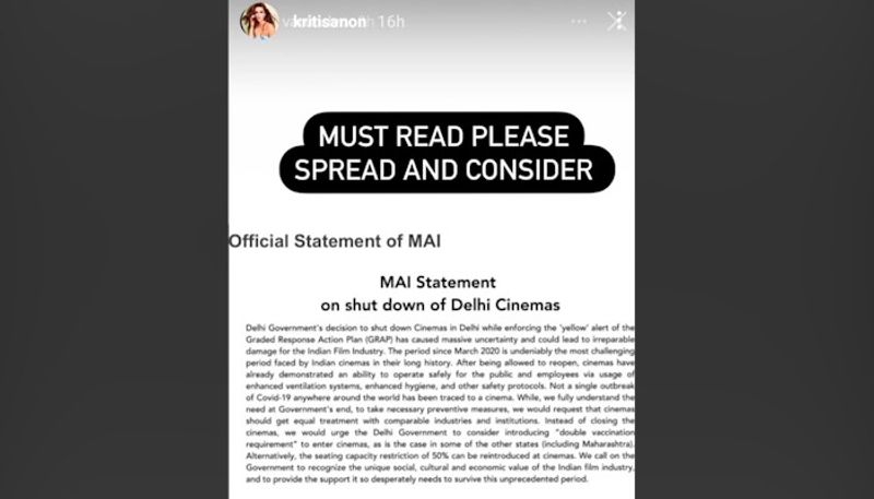 The Bhediya co-stars, Varun Dhawan and Kriti Sanon urged their fans to come forward in supporting the association by sharing the MAI’s statement, as well as requesting the government to reconsider its decision.