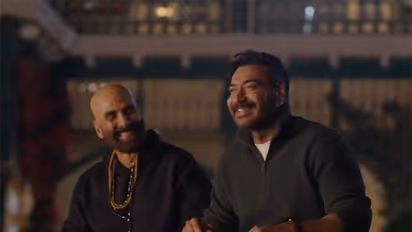 On having Akshay as a new joinee, Ajay quipped, "Koi bhi franchise nhi chordta" Akshay could be seen sporting a bald look, wearing a black kurta pyjama and dark sunglasses.