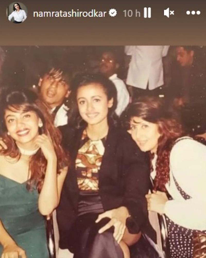 One such birthday wish came from veteran actress Namrata Shirodkar, who shared a throwback picture with Shah Rukh Khan on her Instagram stories. In the old photograph, Shah Rukh Khan was accompanied by his wife, Gauri Khan, and former actress Sangeeta Bijlani. The four stars appeared in high spirits as they posed for the camera. The women in the picture were dressed in their finest Western attire, while SRK stood behind his wife, managing to sneak into the frame. Namrata Shirodkar captioned the image with, "Happy birthday @iamsrk! Wishing you a year as epic as you are!"