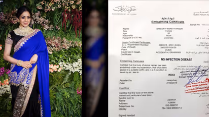 The embalming certificate of Sridevi issued by the Dubai Health Authority.