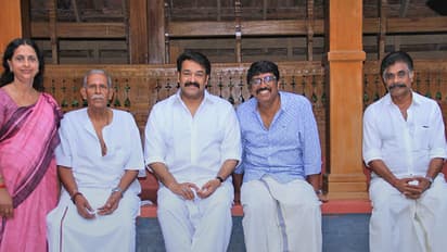 "A revisit to my ancestral home, Elanthoor Punnakkal after 32 years, while sitting on the veranda reminiscing those nostalgic memories (sic)," Mohanlal tweeted, with a photo of him along with some of his family members and also filmmaker B Unnikrishnan.