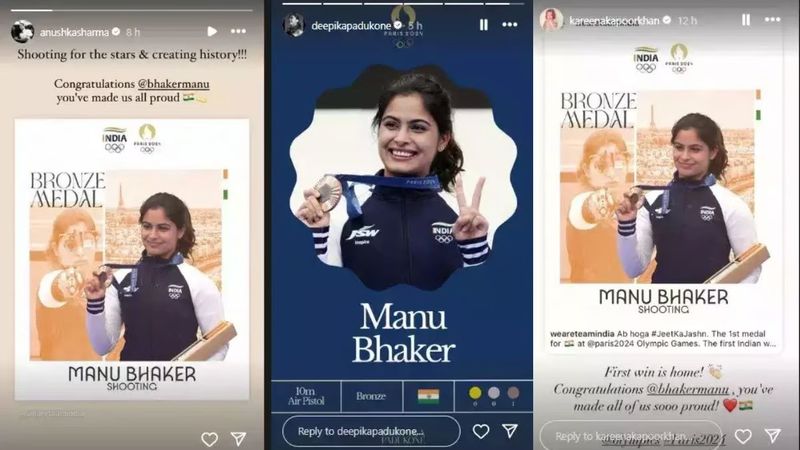 Veteran actor Jackie Shroff also lauded Bhaker's Olympics win. "Account opened.. Manu Bhaker wins Bronze in 10 mt air pistol event, India's first medal in Paris Olympics," he wrote on his Instagram story.
