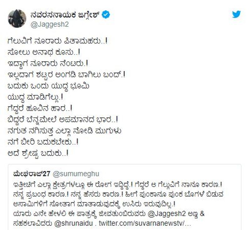 Star of the movie Jaggesh had kept mum on the issue so far. But now he has replied to the same on his Twitter account, through a poem in Kannada.