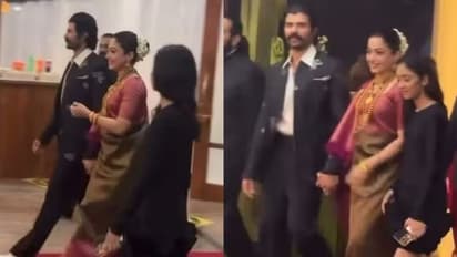 Rashmika Mandanna and Vijay Deverakonda threw a reception in Karnataka's Kodagu (Coorg) region on Monday, April 6, one day after her 30th birthday. The Mysaa star attended the event in a Coorgi saree, paying homage to her ancestors. Rashmika and Vijay were seen strolling hand in hand in a viral video, followed by the rest of the family.