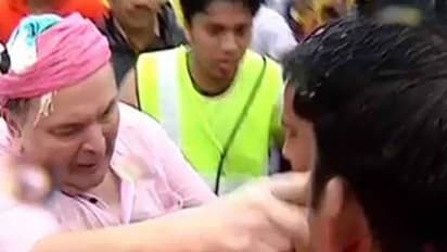 The video shows Rishi Kapoor and Randhir Kapoor pushing and slapping people around them during the time of visarjan in Chembur, Mumbai.