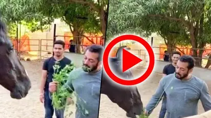 "Is Bollywood's famous actor Salman Khan facing shortage of food essentials?", people thought upon seeing a video of him eating coriander leaves. The answer is obviously, no, it's his love for his black horse, which caused the the actor to hold a bunch of fresh coriander leaves to feed it.