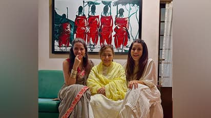 The trio looked radiant in festive outfits. Simple chose a white Kashmiri embroidered suit, Shruti wore a grey saree with a red border, and Farida Jalal stunned in a white suit with a yellow dupatta.
