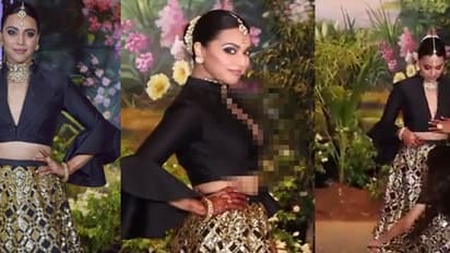 In the reception which was held in the Leela hotel in Mumbai, Swara picked for herself a golden-black lehenga by Abu Jani Sandeep Khosla that was paired with a black frilly sleeved crop top. The crop top that she wore had a plunging neckline which showed a bit too much of her cleavage. During the photoshoot session, she suffered an oops moment.