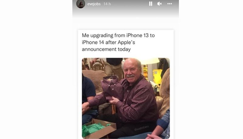 "Me upgrading from iPhone 13 to iPhone 14 after Apple's announcement today," read her meme-template showing a man dressed in a shirt, who held along another such like.