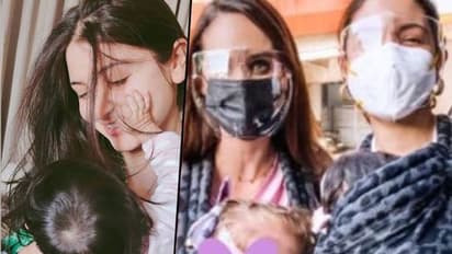 In the picture, Anushka and Danielle were seen carrying their kids in matching baby carriers while they had their masks and face shields on.