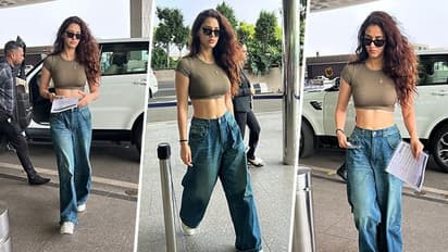 On Wednesday, she was spotted at the airport wearing a grey colour crop top paired with flared jeans.