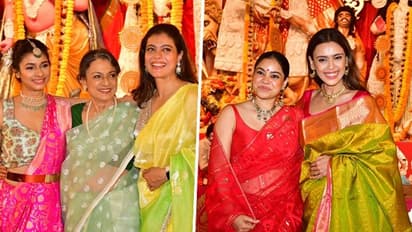 As it's time for the festive season, celebrities attended the Durga Puja pandal in Mumbai wearing beautiful sarees.
