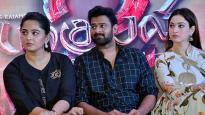 In the video, Prabhas, Tamannaah and Anushka are seen sitting together on the stage, while SS Rajamouli is addressing the media in Kerala. We can clearly see Prabhas requesting Tamannaah to tell Anushka to applaud while Rajamouli was speaking about their movie Baahubali.