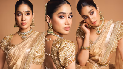 Actress Janhvi Kapoor is captivating fans with her stunning photos in a golden saree, radiating like a beautiful angel. Her viral Instagram pictures are winning hearts across social media platforms.