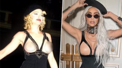 Kim Kardashian copied Madonna's scandalous breast-baring gown at Paris Fashion Week? Pictures
