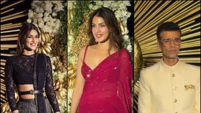Bollywood stars graced the glamorous wedding reception of Rashmika Mandanna and Vijay Deverakonda. Celebrities like Kriti Sanon, Rhea Chakraborty, and Karan Johar wowed fans with stunning outfits and stylish appearances.