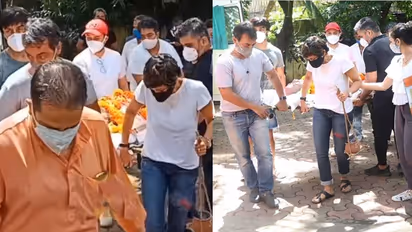Unlike followed in the Hindu old tradition of a man in the family performing the last rites, wife Mandira was seen holding the bier of her husband, which men in India usually hold.