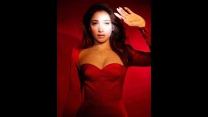 She let her hair open and wore a simple gold neckpiece with basic makeup. Tamannaah captioned her photographs with "Inspired" and a red heart emoji.