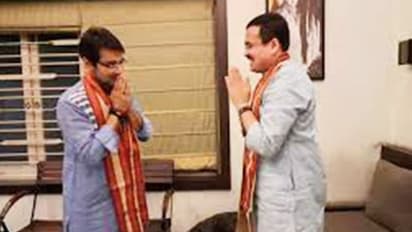 BJP leader Anirban Gangopadhyay visited Tollywood actor Prosenjit Chatterjee's house on Tuesday (February 16) evening. The two talked for a while. Later, Anirban gifted his self-written book 'Amit Shah and the March of BJP' to Prosenjit. The two posed smiling in front of the camera.