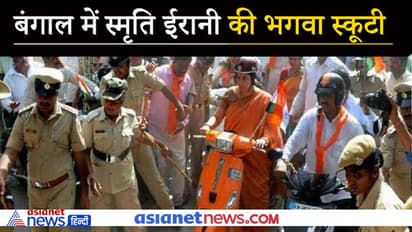 Smriti Irani rides scooty during BJP’s roadshow in West Bengal