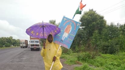 Wearing a traditional 'dhoti-kurta' and holding the tricolour with a birthday celebration banner attached to the flagpole, Narasimha set out on his over 2000 kilometre 'padyatra' on July 17 from Badvel.
