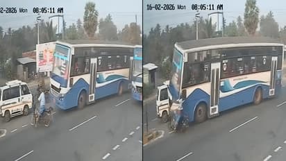 A CCTV video from Salem, Tamil Nadu, shows a biker being crushed by a speeding bus at a junction. One bus had stopped for pedestrians, blocking visibility, when another bus overtook at speed and hit the biker, who was not wearing a helmet.