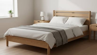 A low-profile platform bed is perfect for small bedrooms. Its clean design makes the room feel open. It's stylish, ergonomic, and ideal for a minimalist look.