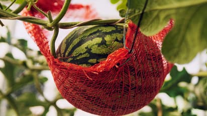 A watermelon vine spreads out, so it needs a lot of space. Water it a little every day, but make sure water doesn't collect. Add organic manure or vermicompost every 15 days. As the vine grows, use a net or rope to give it support.