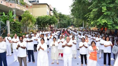 Karnataka BJP president BS Yeddyurappa and other leaders celebrate International Day of Yoga in Malleswaram, Bengaluru
