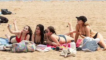 People enjoy the weather at Elwood beach on November 27, 2020 in Melbourne, Australia. Victoria has recorded no new coronavirus cases for the 28th consecutive day, meeting the official definition for elimination. (Photo by Daniel Pockett/Getty Images)
