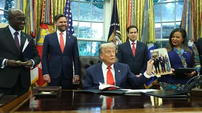 Trump hailed it as “a new chapter of hope and opportunity, harmony, prosperity and peace.”