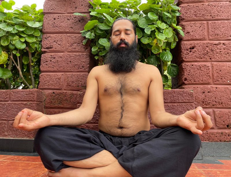 Padahasthasana: For this asana, start by standing in Samasthithi and then exhale, gently bend your upper body down from the hips and touch your nose to your knees. For this asana, you have to place your palms on either side of your feet.