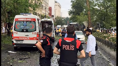 The bomb targeted a service shuttle bus carrying officers from Istanbul's anti-riot police as it was passing through the central Beyazit district close to many of the city's top tourist sites, Istanbul governor Vasip Sahin said in a live statement on Turkish television.