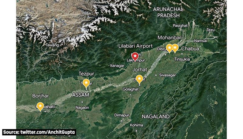 In 1951, the government decided to build airstrips in Assam and Lilabari was picked for a fair-weather strip. The airfield is located on a narrow strip of plain country lying between the Himalayas and the Brahmaputra, 8 km northeast of North Lakhimpur town at 101 metres above mean sea level.