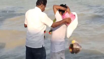 The NCP workers on Saturday bid farewell to former Maharashtra Deputy CM Ajit Pawar by immersing his ashes in the sea of Agni Theertha in Rameswaram.