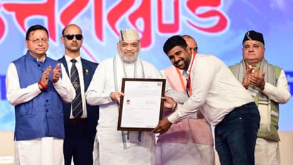 Union Home Minister Amit Shah on Saturday handed over appointment letters to newly recruited constables in the Uttarakhand Police. Shah was attending an event held to mark four years of the Pushkar Singh Dhami government in Uttarakhand. Among those who received appointment letters on stage were Aman Singh, Akash, Abhay Chauhan, Arjun Nath Goswami, and Yogesh Nath.