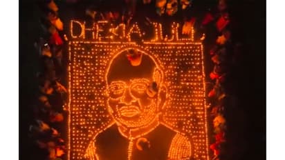BJP workers on Saturday created a portrait of Union Home Minister Amit Shah with diyas at Shaheed Maidan ahead of the Vijay Sankalp rally in Dhekiajuli of Sonitpur district in Assam.