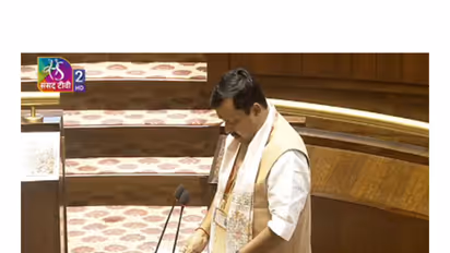 BJP National President Nitin Nabin on Thursday took oath as a member of the Rajya Sabha. Several other newly elected members also took the oath in the Upper House on the occasion. Nabin was welcomed by BJP MP Arun Singh upon his arrival at Parliament.