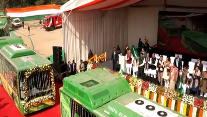 Delhi Chief Minister Rekha Gupta, along with Transport Minister Pankaj Kumar Singh, PWD Minister Parvesh Verma and BJP National President Nitin Nabin, flagged off around 500 electric buses and the Delhi-Panipat bus service on Sunday to mark the BJP-led government's first year in office.