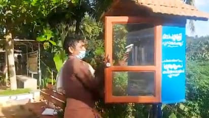 Perumkulam is known to be the first book village in the state. In the video, a man walks towards a book rack on the roadside and opens up the rack where several books are stacked.
