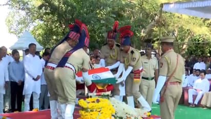 Former Union Home Minister and Congress leader Shivraj Patil's last rites were performed with state honours in Latur on Saturday. The ceremony was attended by Congress President Mallikarjun Kharge, Lok Sabha Speaker Om Birla and other leaders as they paid their last respects.