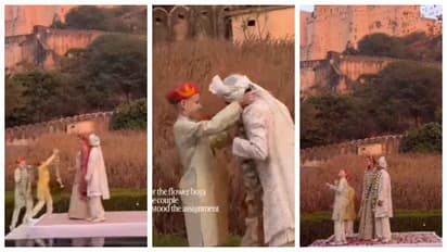However, since event management companies started organizing weddings directly, the company now decides the ceremonies. As a result, many rituals have been altered for the convenience of photoshoots and reels. The video showed such a wedding celebration. The wedding of an Indian groom and a foreign bride is taking place on a platform in the middle of a lake, with an ancient fort in the background.