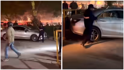 A luxury Mercedes was allegedly vandalised by security guards for driving on the wrong side of the road in Gurugram. The dramatic incident unfolded outside Cyber Park in Sector-31, was caught on camera, and the video has gone viral on social media.