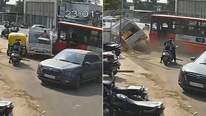 A serious road accident near Gota Ceramic Market in Gujarat's Ahmedabad was caught on CCTV on Friday afternoon, showing an AMTS bus crashing into multiple vehicles in a chain collision. The incident involved a school van, a tempo and an autorickshaw, and briefly disrupted traffic on one of the area’s busiest roads.