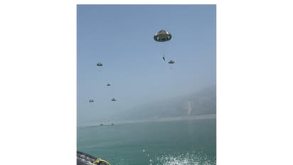 "On 08 Mar 26, #IAF aircraft carried out Combat Free-Fall and Static Line para-drops over Tehri Lake, in a joint exercise with the Indian Army. The ex showcased seamless inter-service synergy and operational capability," said IAF.